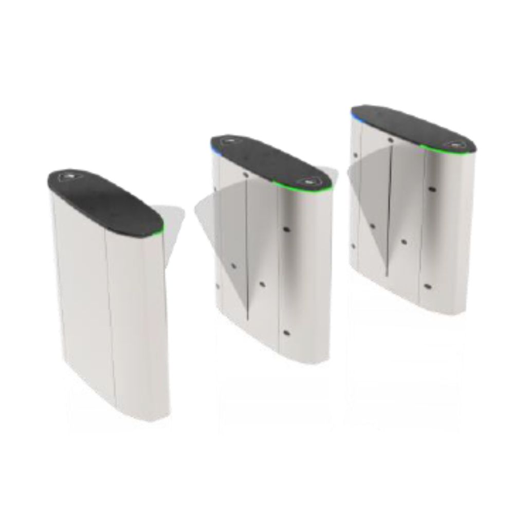 HG02 GL Kétirányú motoros működésű gyorskapu kiegészítő mester/szolga egységek, rozsdamentes acél felülettel, komplett vezérléssel, áramkimaradás esetén automatikus kioldással, kártyaolvasó előkészítéssel, állapot és irányjelzőkkel, RGB LED megvilágítású 10 mm-es üvegszárnyakkal