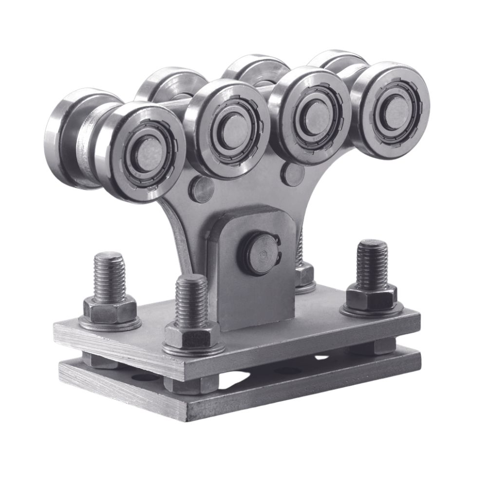 Görgőbak 8 csapágyazott kerékkel GIPI4 RG/Z úszókapu sínhez, állítható talppal, teherbírás 600 kp