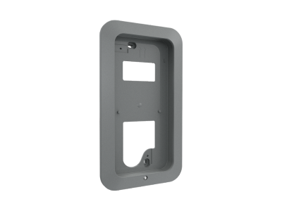 Szürke színű Zamak keret, IK09 ütésállósági minősítéssel. Az LHS sorozatú audió és videó kaputelefon kültéri egységekhez használható, az ‘60090640’ süllyesztett szerelődoboz alkalmazásával.