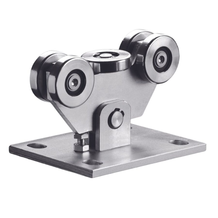 Görgőbak 4+1 csapágyazott kerékkel 60x60x4mm-es úszókapu sínhez